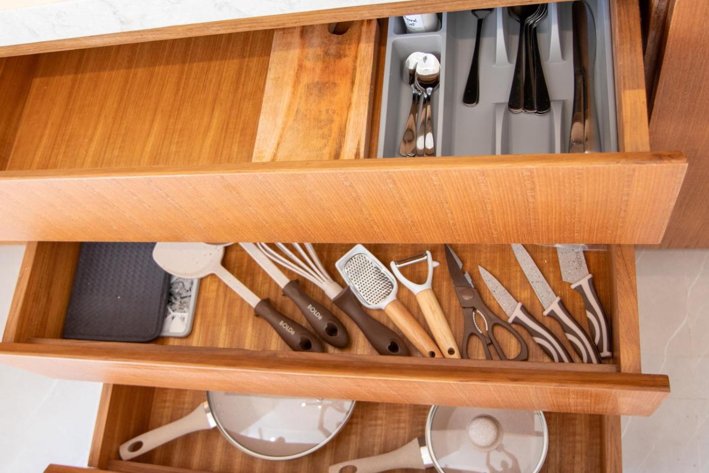 Two-Bedroom House. The private pool is the special feature of this holiday home. Featuring a private entrance, this air-conditioned holiday home comprises 1 living room, 2 separate bedrooms and 2 bathrooms with a walk-in shower and a bath. Guests will find a stovetop, a refrigerator, kitchenware and a microwave in the kitchen. The holiday home also provides guests with a barbecue. The spacious holiday home provides a tea and coffee maker, a seating area, a dining area, a flat-screen TV with streaming services, as well as pool views. The unit offers 2 beds.