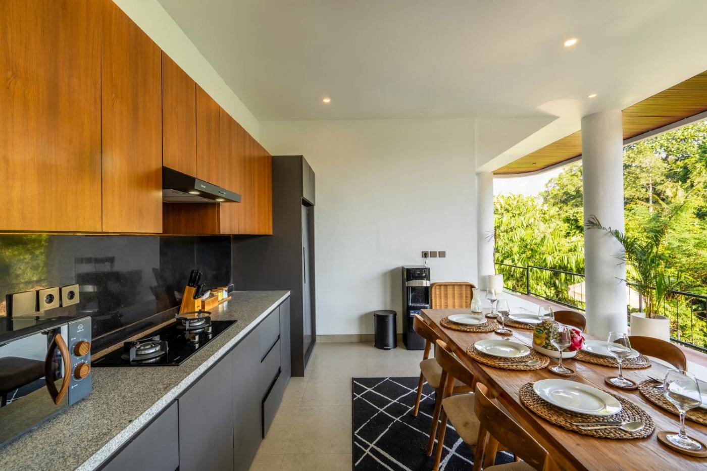 Three-Bedroom Villa. The private pool is the standout feature of this villa. Boasting a private entrance, this spacious villa also comes with 3 bedrooms, a seating area and 3 bathrooms with a bath and a shower. The fully equipped kitchen has a stovetop, a refrigerator, kitchenware and a microwave. Featuring a terrace with garden views, this villa also features air conditioning and a flat-screen TV. The unit has 3 beds.
