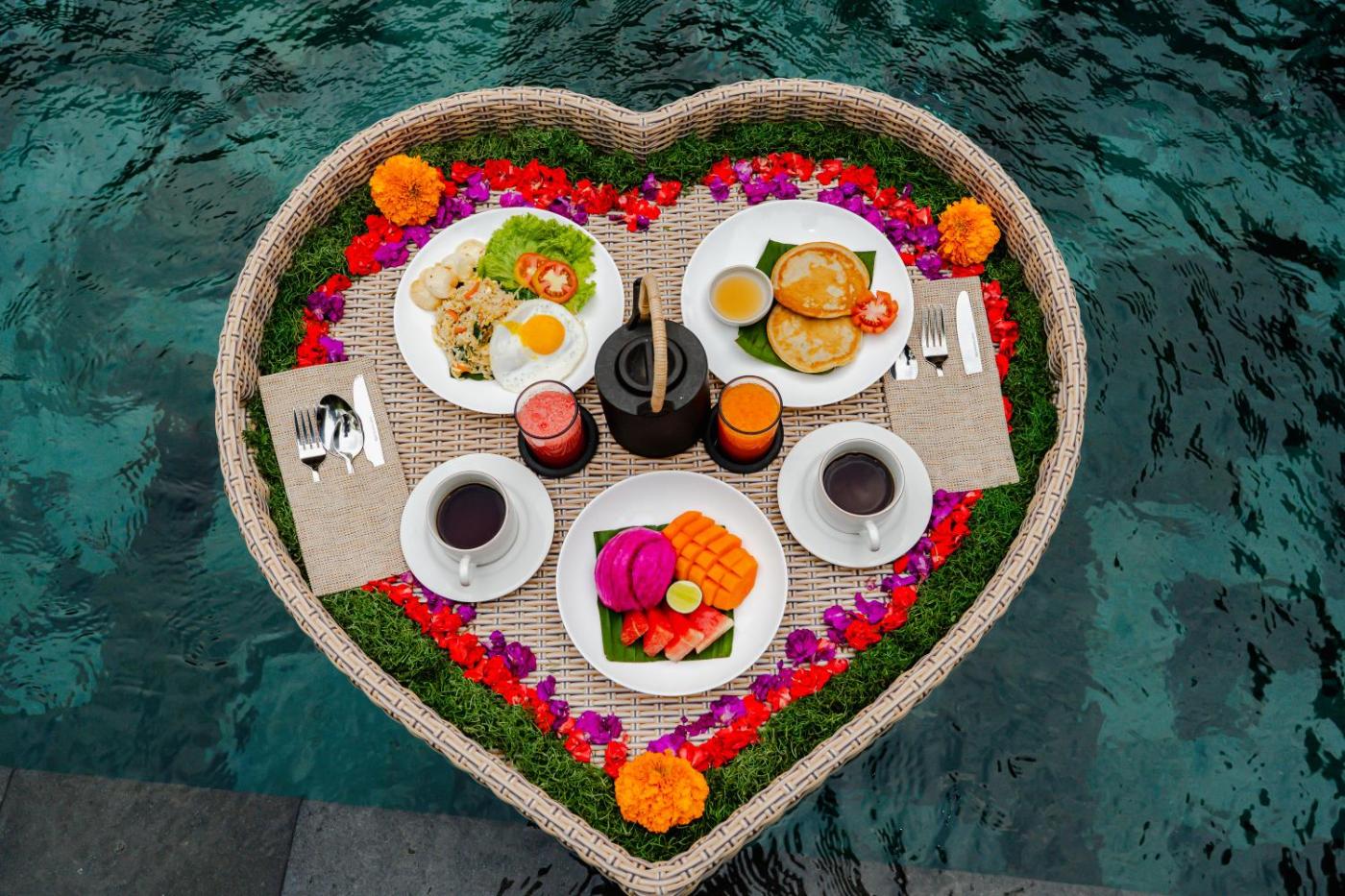 Guests can take in the panorama as they swim in the infinity pool at the villa. A bicycle rental service is available at Galang villa and hidden garden.